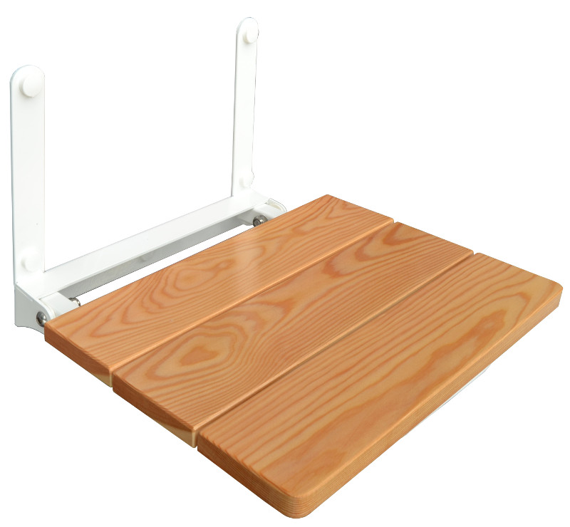 You are currently viewing Castelmerlino - Bathroom range - TUV GS Cert. Accessories - Article 080 Wall-mounted seat for showers in with seat in Larch Wood