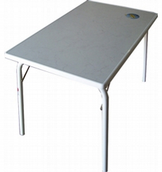 In the wide assortment of tables, the simplest models with a single top and folding legs, are divided into different materials: solid larch, melamine panel and Okumè marine plywood.